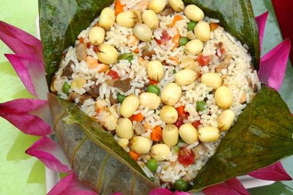 Sự kết hợp hài hòa giữa các thành phần như tôm, hạt sen, cà rốt, lạp xưởng… đem đến cảm giác thú vị cho người …